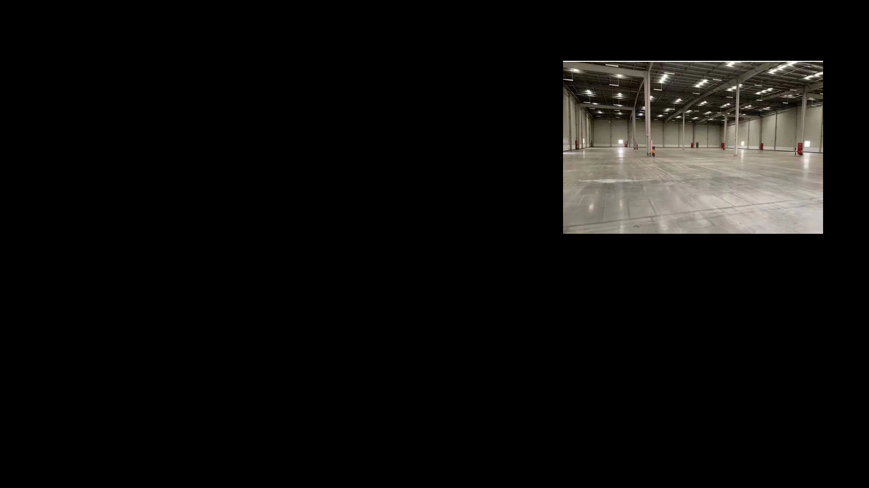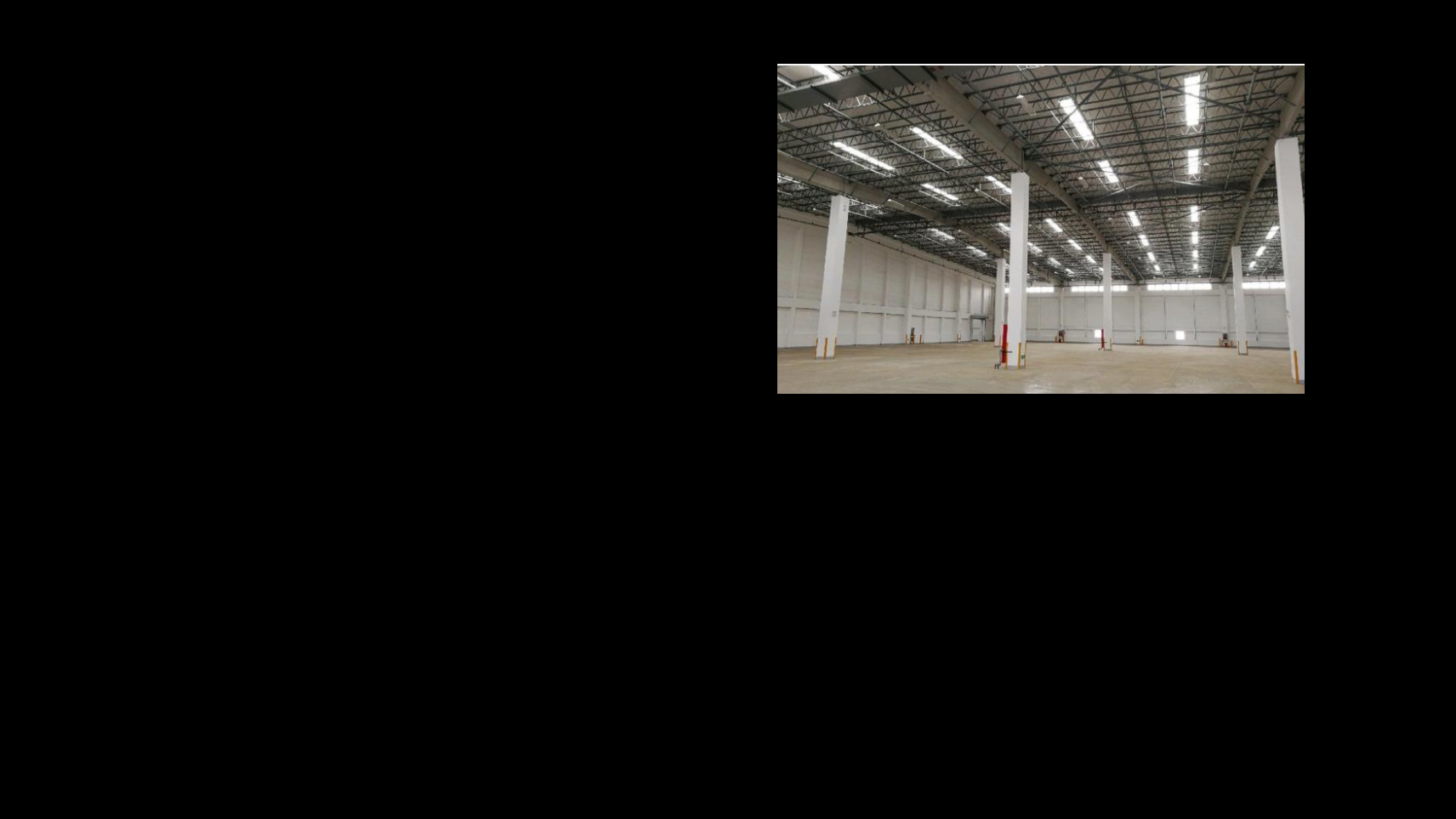 仓库承重:3T 仓库场地:40米*250米 雨棚宽度:7 米 仓库地面:金刚砂地坪