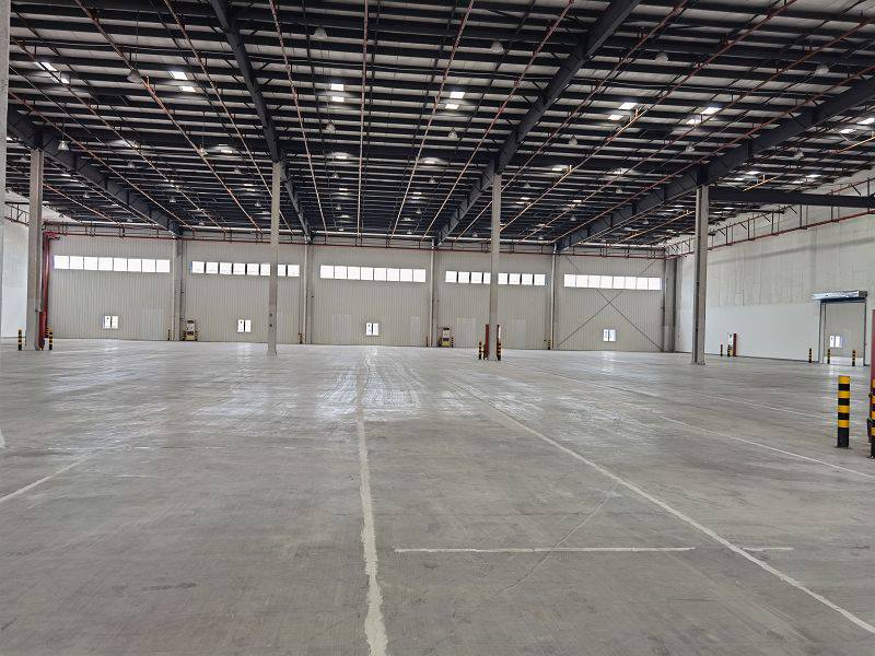 仓库承重:3T 仓库场地:40米*250米 雨棚宽度:7 米 仓库地面:金刚砂地坪