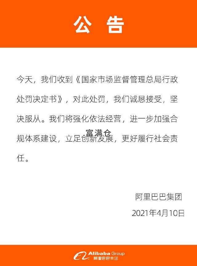 富满仓推荐资讯:据阿里巴巴官方微博,阿里巴巴集团对市场监管总局处罚作出回应: