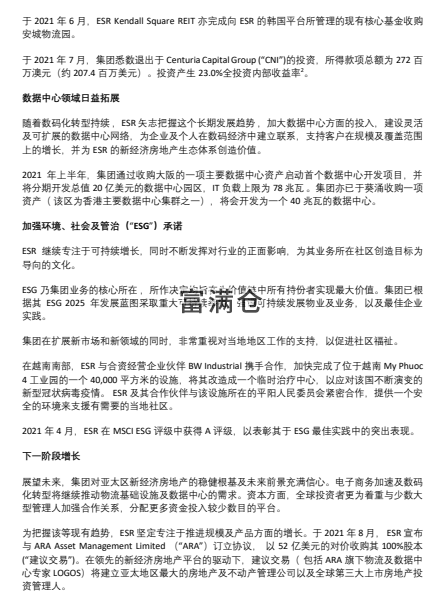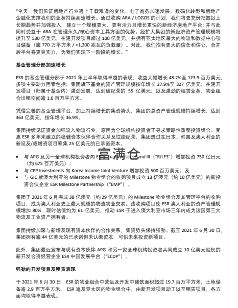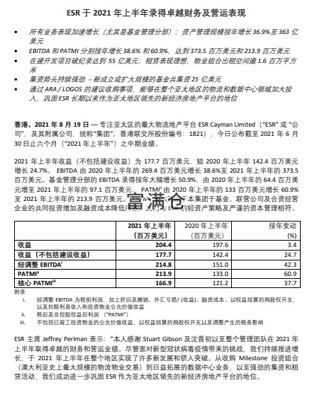 ESR于2021年上半年录得卓越财务及营运表现