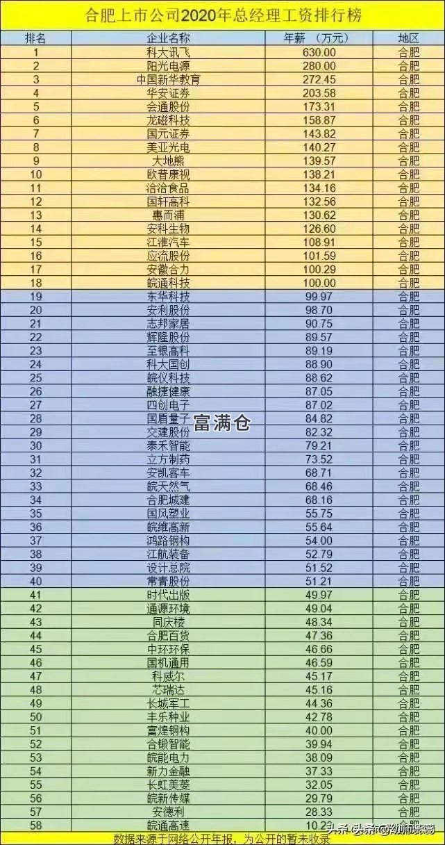 富满仓9月26日最新信息:合肥上市公司去年总经理工资排行榜